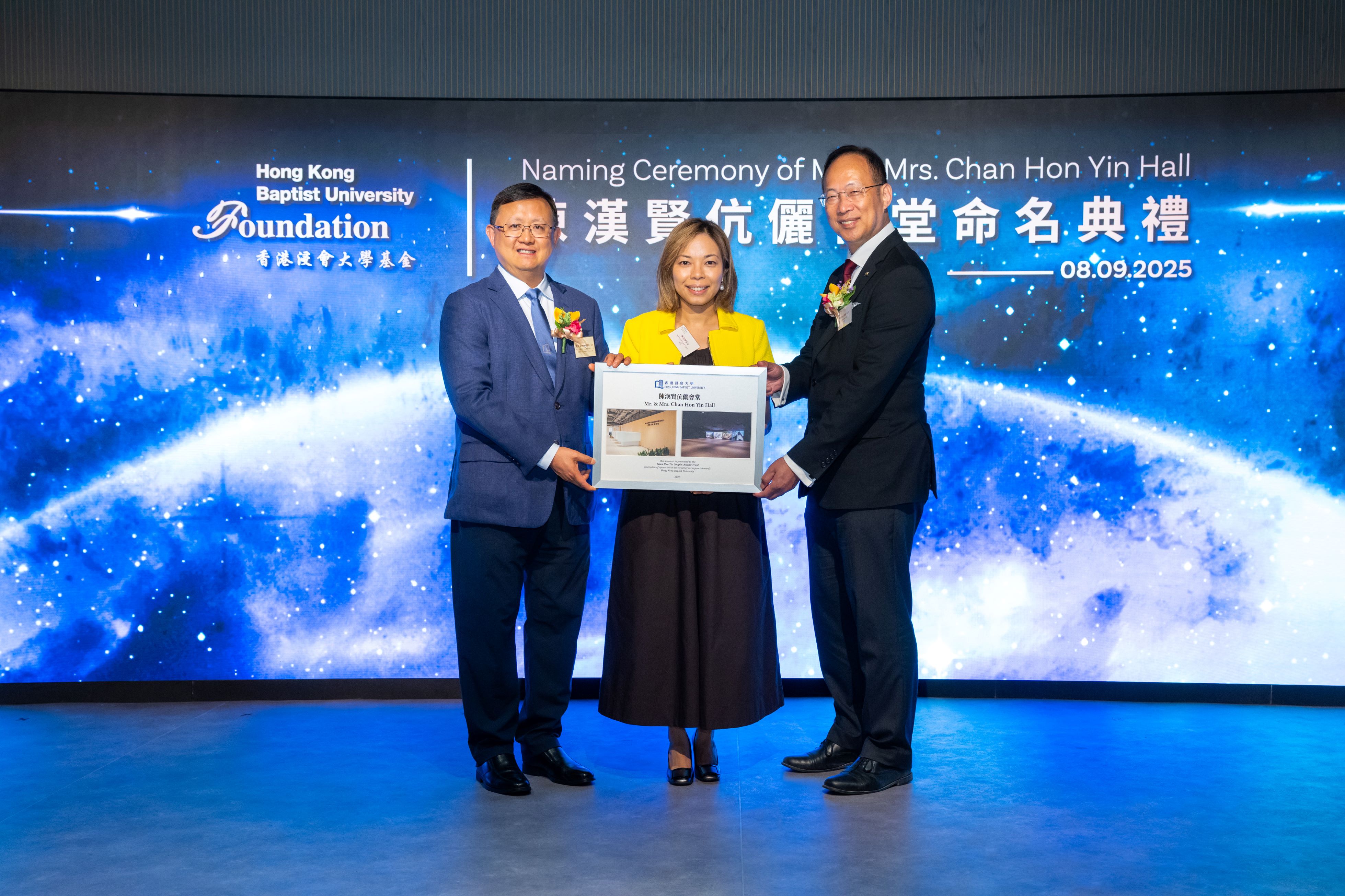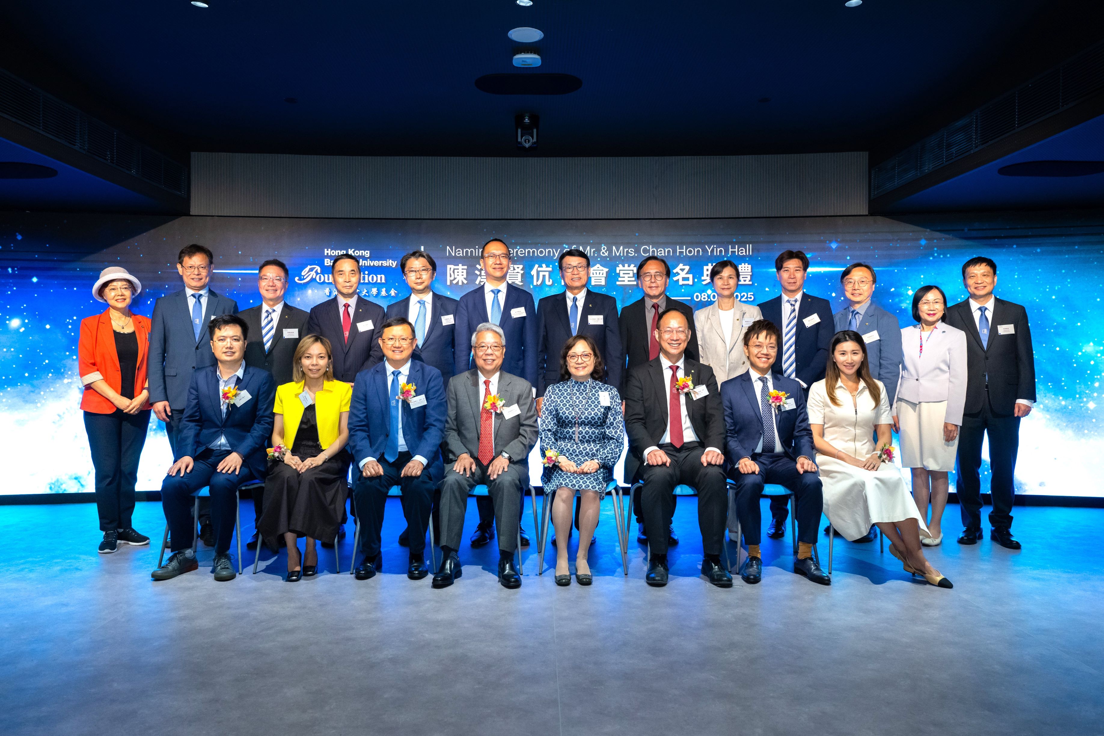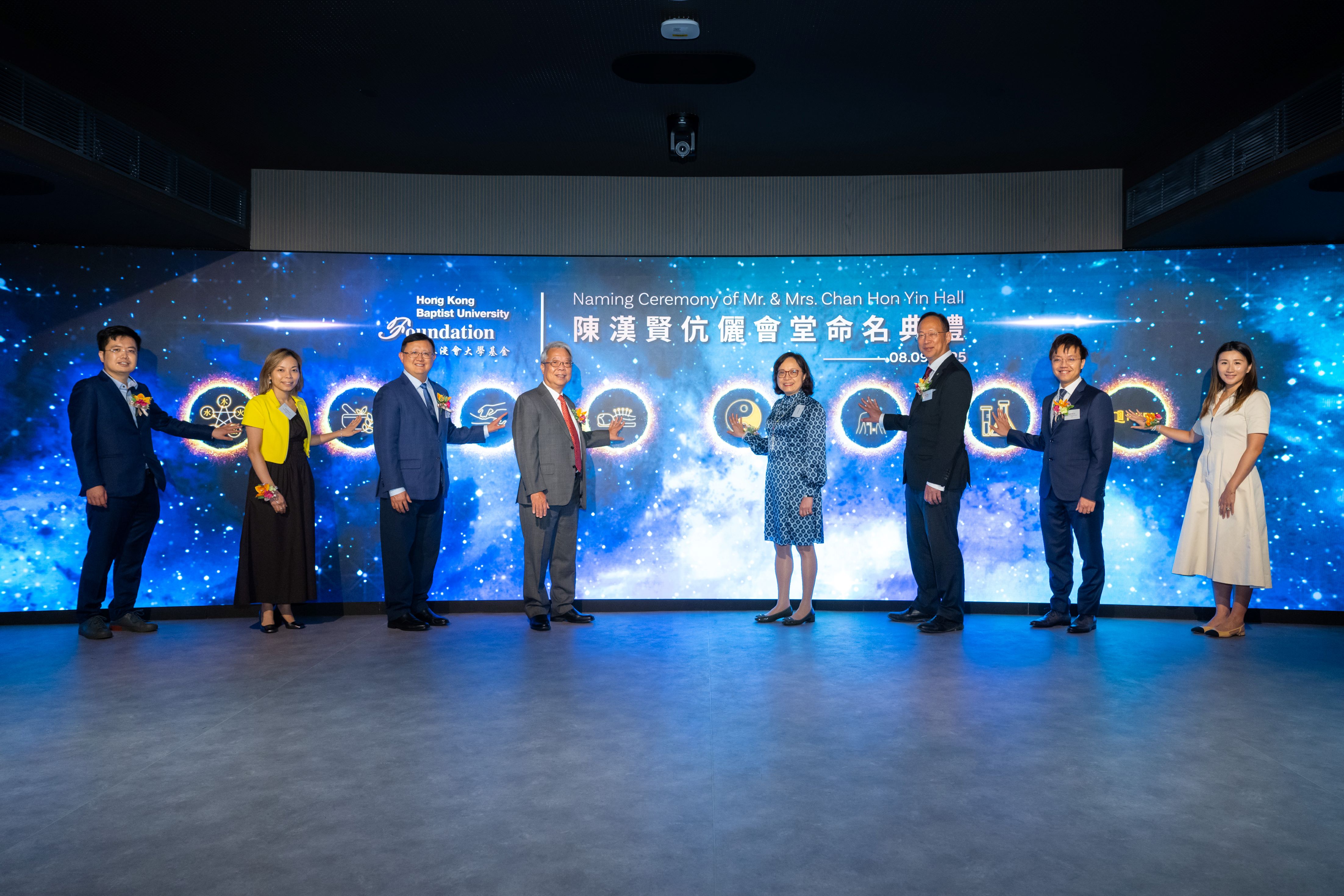 Officiating at the naming ceremony were Mr Anthony Chan, Chairman of the Trust, and his wife Ms Cindy Chin; Ms Donna Chan, Director of the Trust, and her husband Dr Tommy Lee; Mr Alan Chan, Director of the Trust, and his wife Ms Jacqueline Cheng; Dr the Hon Kennedy Wong, Chairman of the Council and the Court of HKBU and Chairman of the Board of Governors of the HKBU Foundation; and Professor Alex Wai, President and Vice-Chancellor of HKBU.