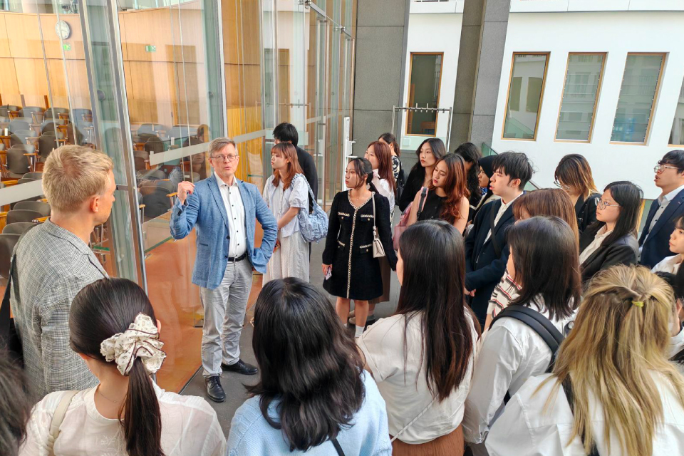 Highlights of the tour included visits to various organisations to understand how Sino-German collaboration plays a key role in global trade, investment and innovation. At the Hong Kong Economic and Trade Office, Berlin (HKETO Berlin) of the HKSAR Government, students learned about its mission in shaping and maintaining the relations among Hong Kong, the Mainland and Germany. In addition to promoting trade and political engagements, HKETO Berlin organises cultural events such as art exhibitions and film festivals to bridge communities.